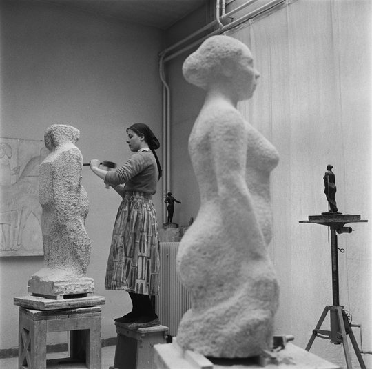 Sculptor at work at Academy of Fine Arts, Amsterdam 1962