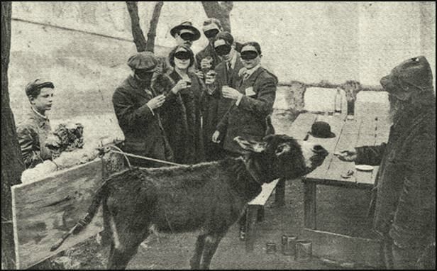Journalist for the newspaper Le Matin, P. Brionne, exposed the hoax in an article illustrated with a carefully arranged tableau of Lolo painting the picture, paint-pots at the ready and with a brush tied to his tail which he wags enthusiastically as Père Frédé treats him to a series of vegetable delicacies, while the masked artist conspirators toast the proceedings. The story even reached Russian artist Mikhail Larionov who issued a manifesto for his avant-garde group who called themselves the “Donkey’s tail”.