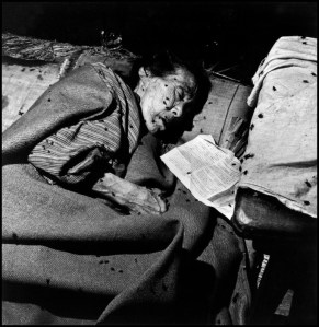 Wayne Miller An elderly lady in a makeshift hospital in the bank of Kango Ginku. Hiroshima, Japan. September 8, 1945