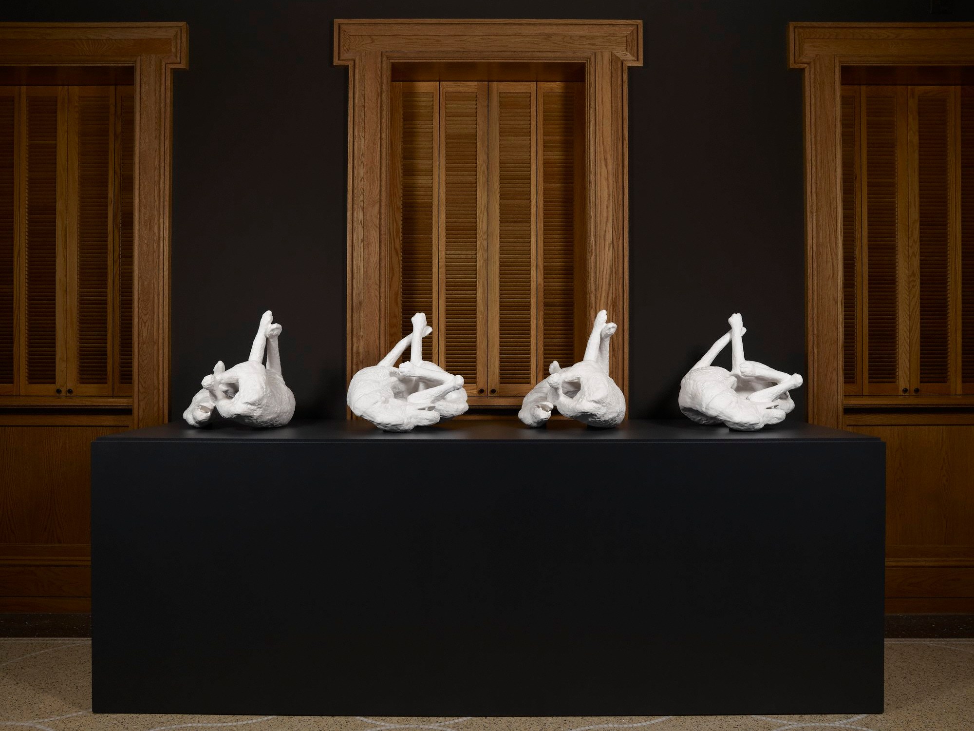 Allan McCollum, in his 1991 The Dog From Pompei, with multiples of the original cast in fibre-glass-reinforced Hydrocal, deliquesces and reanimates the writhing figure, with “delineations…of an almost unlimited variety” as the potential photographic renderings of the bust of Patroclus are evoked by Henry Fox Talbot.