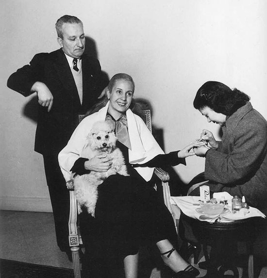 Evita Perón, doing her hair and manicure, Buenos Aires, 1950 Black-and-white photograph; Fiber Base Silver Gelatine Print