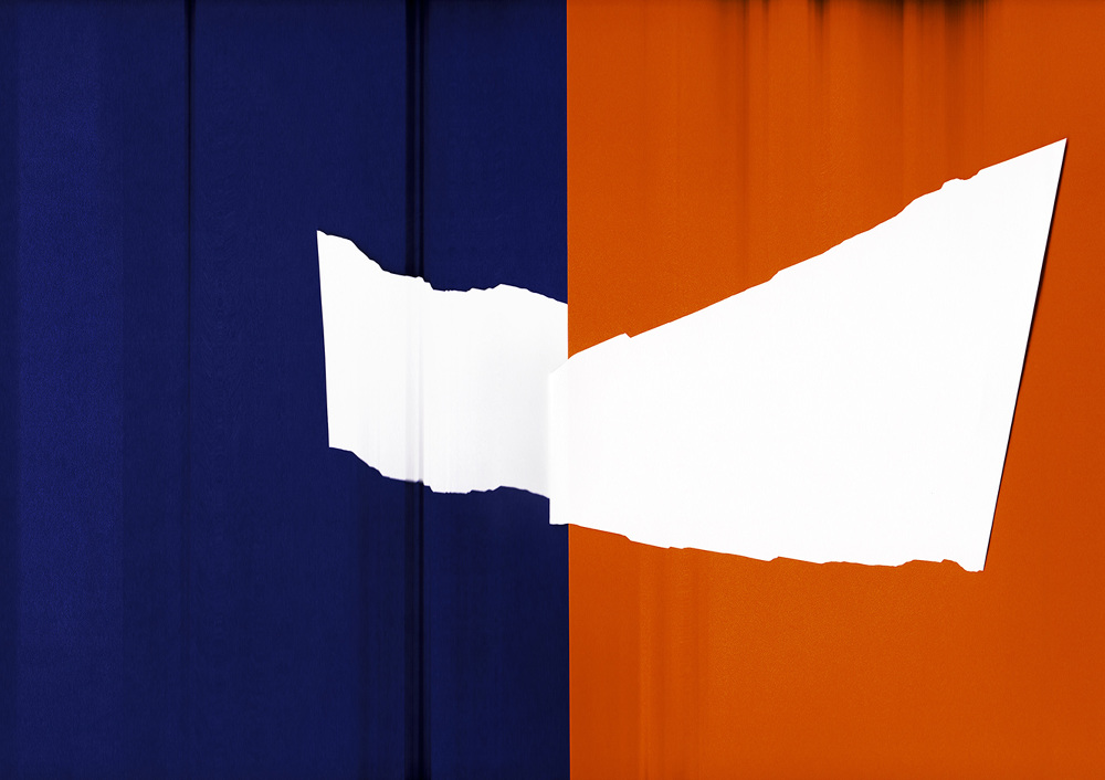 I combine traditional paper-collage technique with the digital expression of a flatbed scanner. As raw material for my images, I use paper and cardboard of different colours, cut or torn into different shapes, from which I then sketch the images on the scanner’s glass platen. During scanning, I pull, lift, and turn these image elements. As my movements are combined with movement of the scanner head, various digital distortions and deviations appear in the image. It is these deviations that give my images their final form.