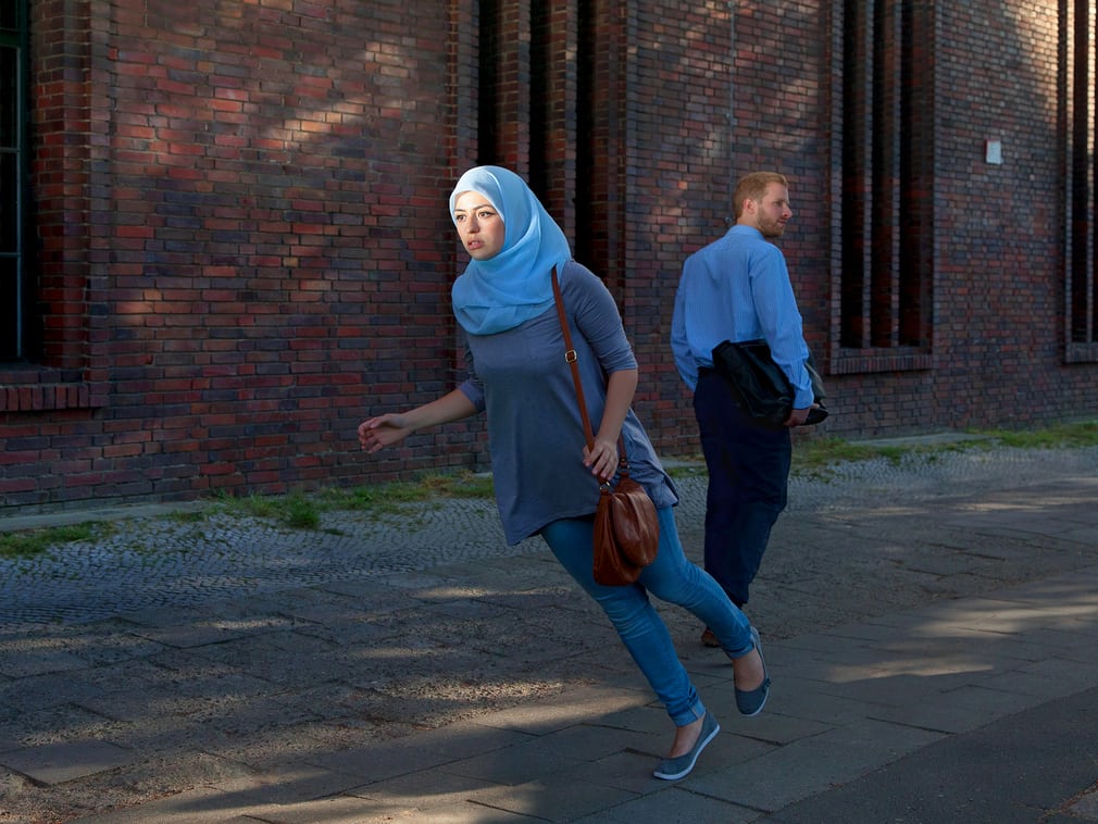 We are grown used to the frozen cinematic tableaux of American photographer Gregory Crewdson, and a little suspicious, after his recent Cathedral of the Pines that such pictures are still in search of a subject other than a First World unease or ennui. Bahmed builds as much tension in his photographs, but with an urgent purpose, inspired to begin his series by the rise of Pegida, the far-right anti-Islamic party in Germany;