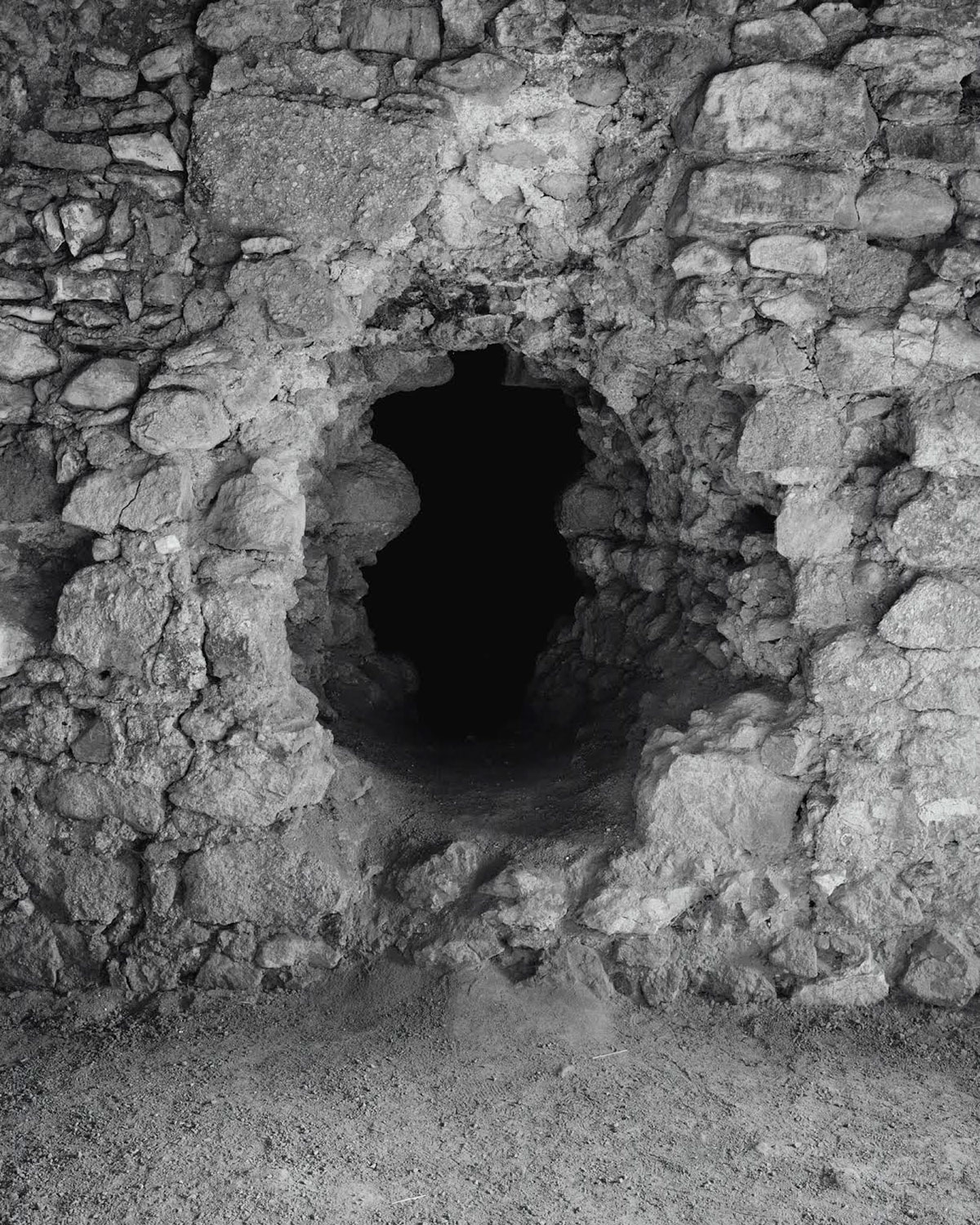 The Czech photographer Tereza Zelenkova (*1985) who now lives in London, draws such voids from out of her own heritage, that dark well of central European photography. Each is like staring into a wound; compelling and yet awful. This face and its pointed ears emerge from the corner of this rock, a block tilted out of loamy forest soil, bound by roots and fringed with ferns. The amateur sculptor has confounded the hollows and protuberances of the canine face, and Zelenkova’s print renders them so deep, that human and animal are merged, yet somehow an image of dogged faithfulness persists.