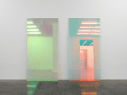 Magic Mirrors (Pink #2 & Blue) 2013 Dichroic polyester film, safety glass and float glass, 260 × 130 × 1.8