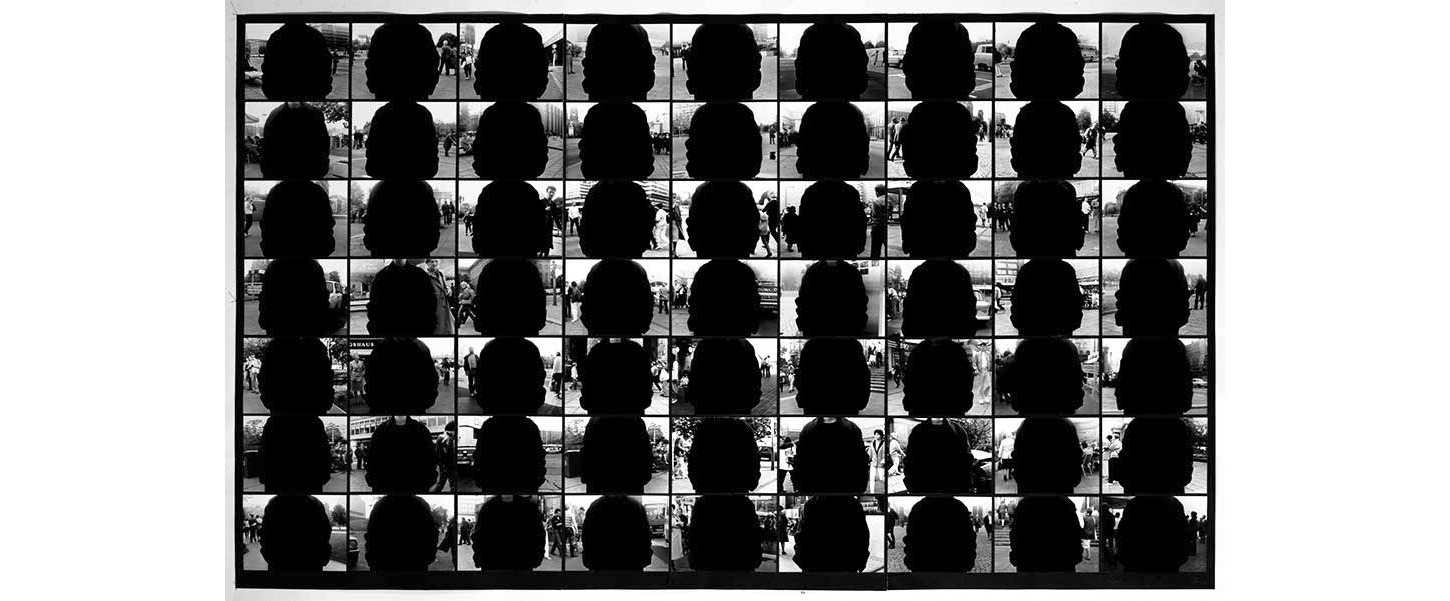 His presentation of these in grids amplifies their consistency of production and connects them to a then-current minimalist aesthetic; each cuts the figure at the neck and below the hands, always in the pockets of a black coat, leaving sufficient detail to assume that it is the same person in every image (though in fact, for images later in the series, someone else dons his coat).