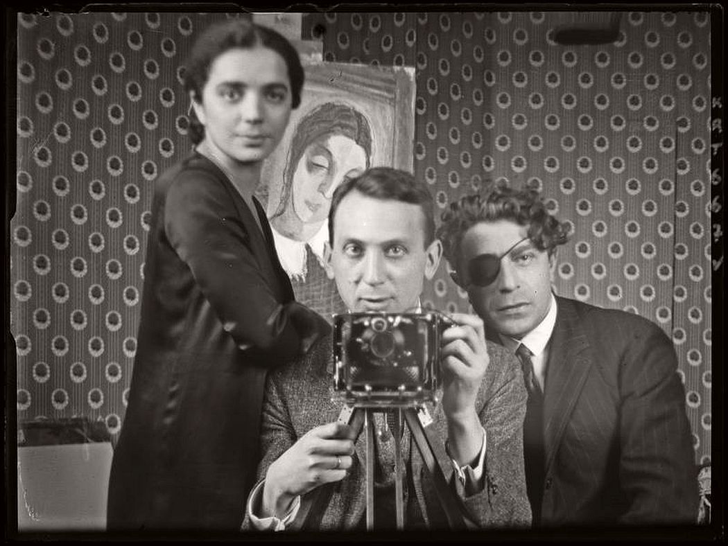 André-Kertész-Self-Portrait-with-friends-Hôtel-des-terrasses-Paris-1926