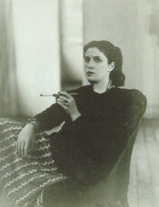 Dora Maar assise dans un fauteuil la main gauche tenant un fume-cigarette levé , 1941 – 1941