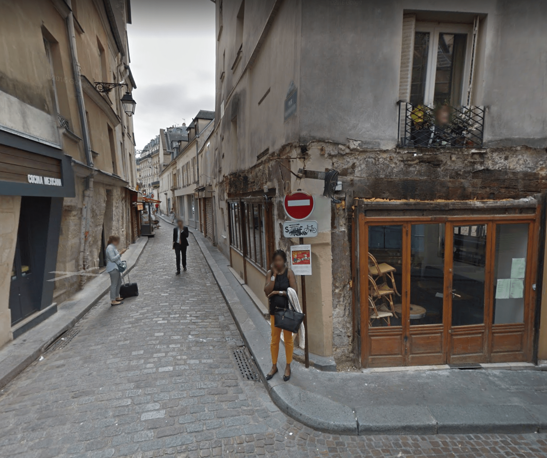 Now, in this Google Streetview there is nary a clue of our tableau to be seen but the kerbstones and cobbles. The panelling and awnings have been torn from the corner, the crowds are dispersed at this early hour, and scattered individuals—tourists—are more occupied with their phones than with shopping.