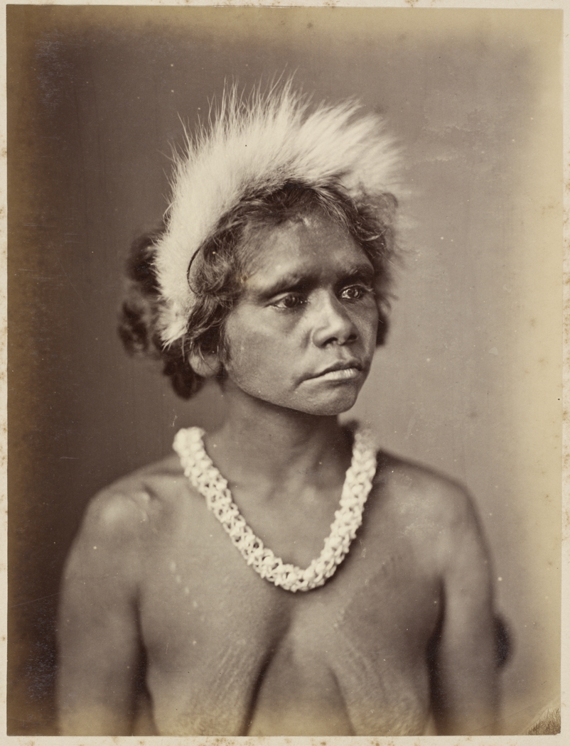 Thus Lindt’s portraits are located in history almost a century after first contact. The Aboriginal artefacts pictured are intended to evoke traditional life, the semblance of which is an artefact of his image-making. The implements, ornamentation and costume were disappearing just as the trees were, and European dress, weaponry and domestic objects were replacing them. Most striking is their mood of melancholy.