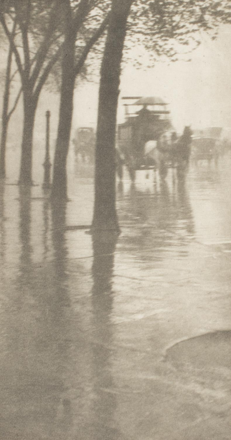Alfred Stieglitz Spring Showers–The Coach [Camera Notes, vol. 5] 1901 Photogravure 13.7 x 7.3 cm Philadelphia Museum of Art Gift of William Innes Homer, 1986