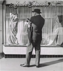 Ron Meers, Eric Thake looking in a dress shop window, gelatin silver photograph, 1964, Eric Thake scrapbook, Manuscripts Collection, State Library Victoria, MS 9826 box 3552:4