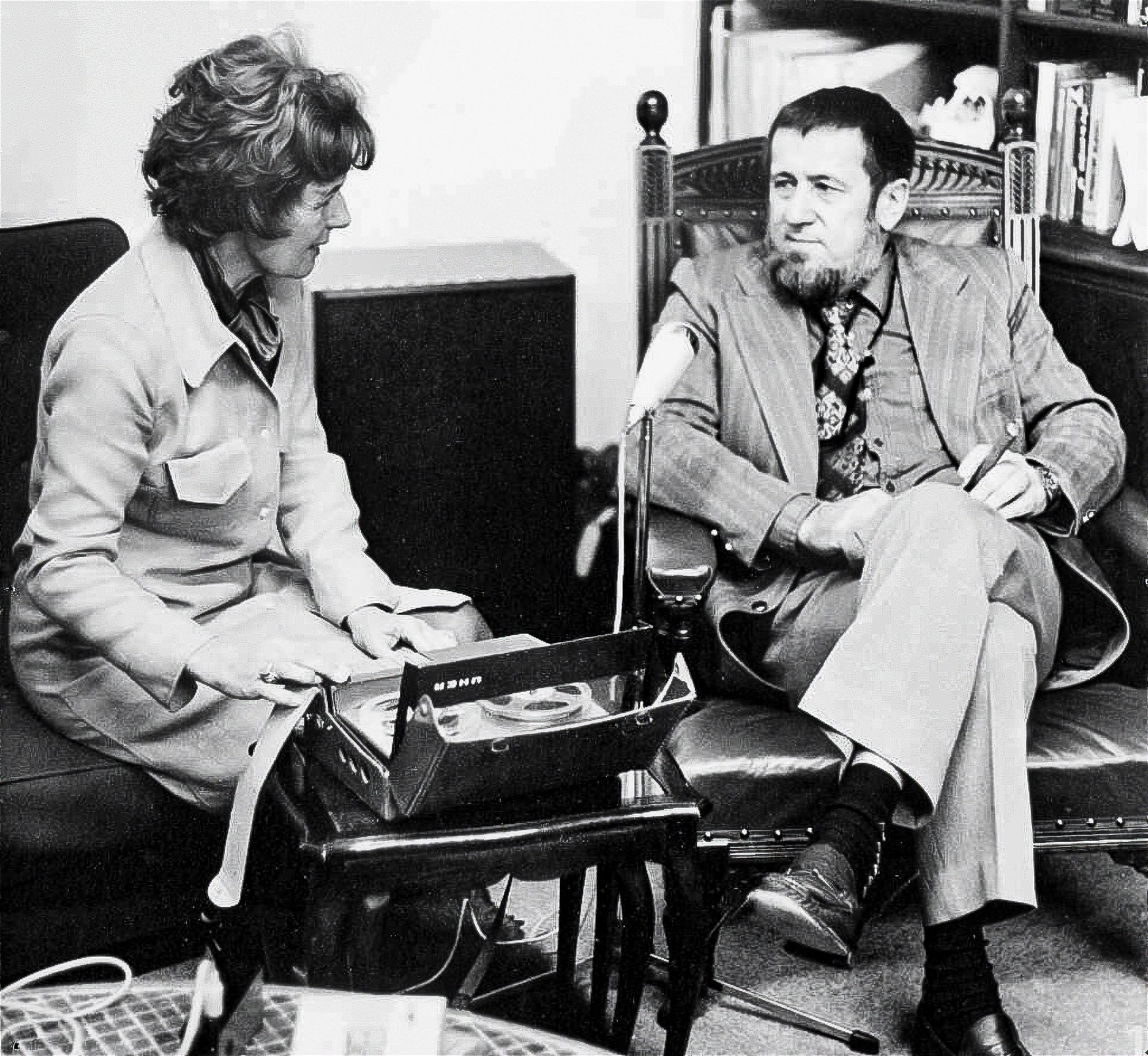 Portrait of Hazel de Berg interviewing physicist Professor Harry Messel, 1972