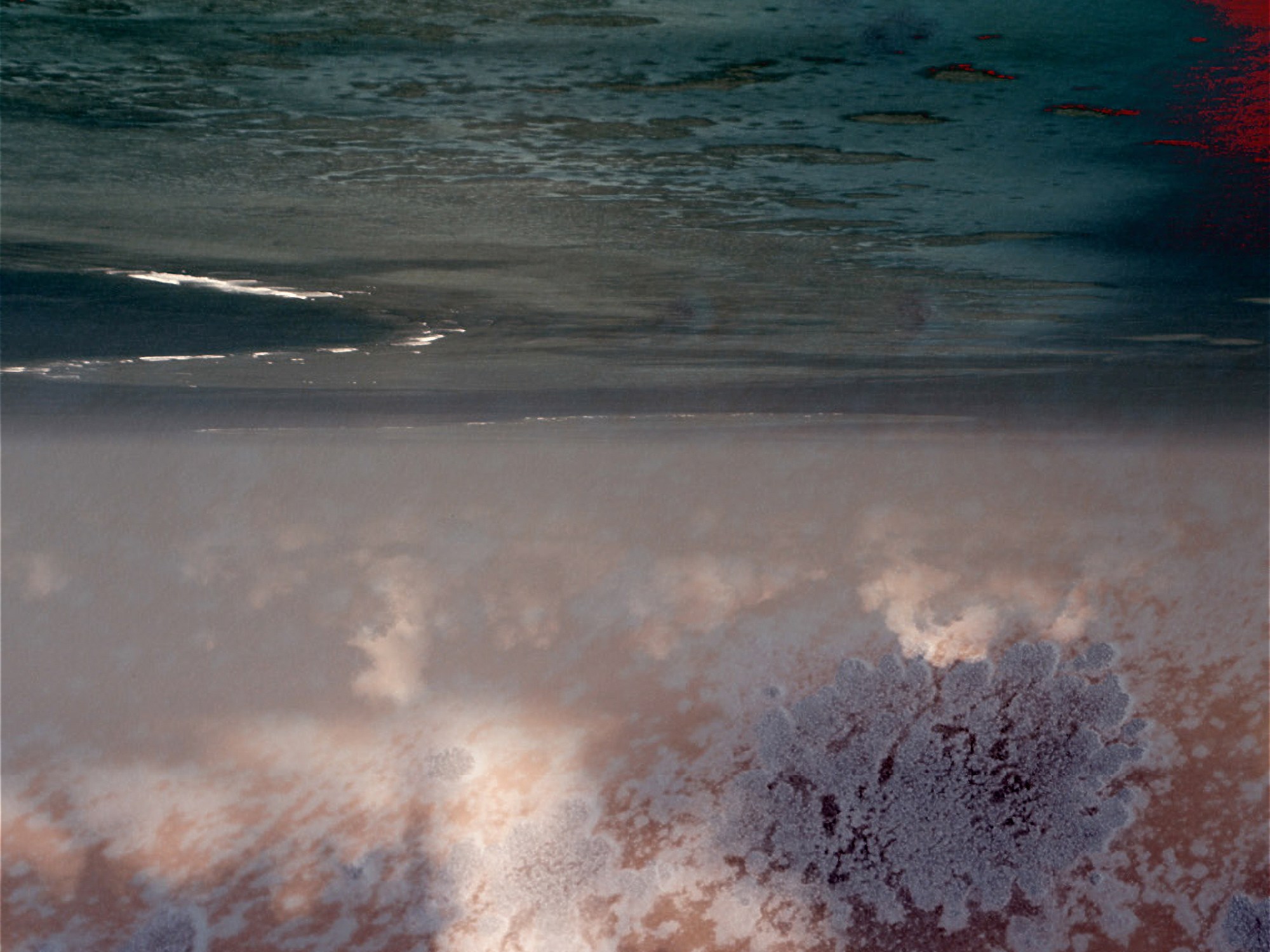 For a colour image of the same situation Mangan superimposes imagery taken in the lab of live coral, a technique applied in a series in which heightened hues are inverted with reorientated, superimposed montage elements. Highly saturated, these make present, but also strange, the colours we admire, and now mourn, in the iconic Reef. We are in some cases left uncertain of scale, so that these may be aerial views of vast tracts of the sea, or abstractions from the microscopic world of the polyp. Scientific measurement prevails over both.