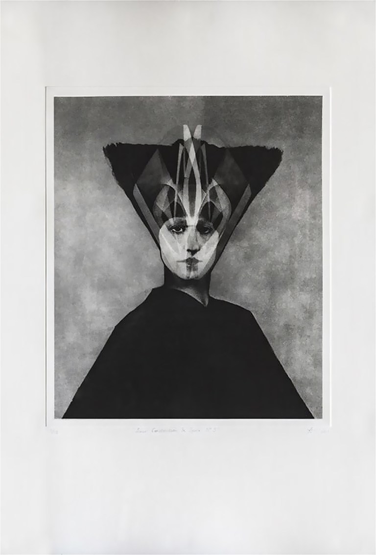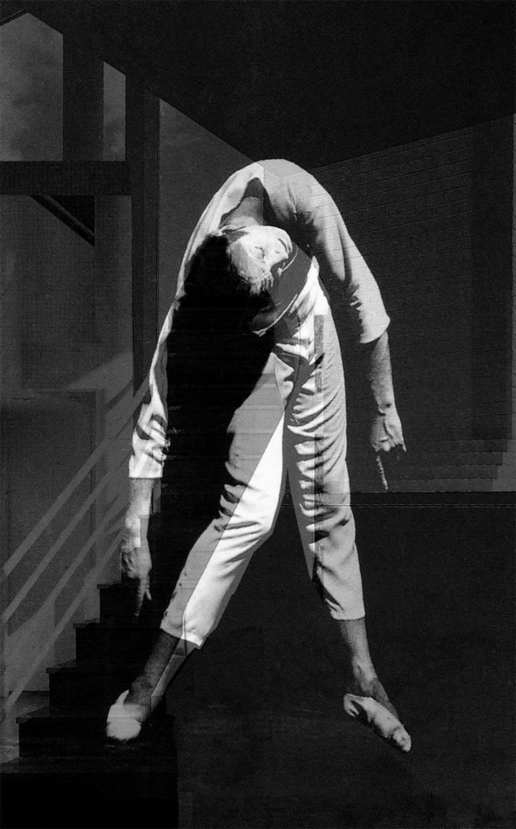 In her The Return, the figure entangled Laocoön-like in a nightmare zigzag of louvres and slats is from Barbara Morgan‘s photograph of Martha Graham’s performance of Lamentation, a modern dance choreographed to Zoltán Kodály’s 1910 Piano Piece, Op. 3, No. 2 and representing grief amidst the Great Depression. It was made in the same year that Morgan moved from California to New York City in 1930 and Lamentation premiered at Maxine Elliot’s Theatre in New York City on 8 January that year. She photographed Graham in her studio, giving her more control over the images she produced.