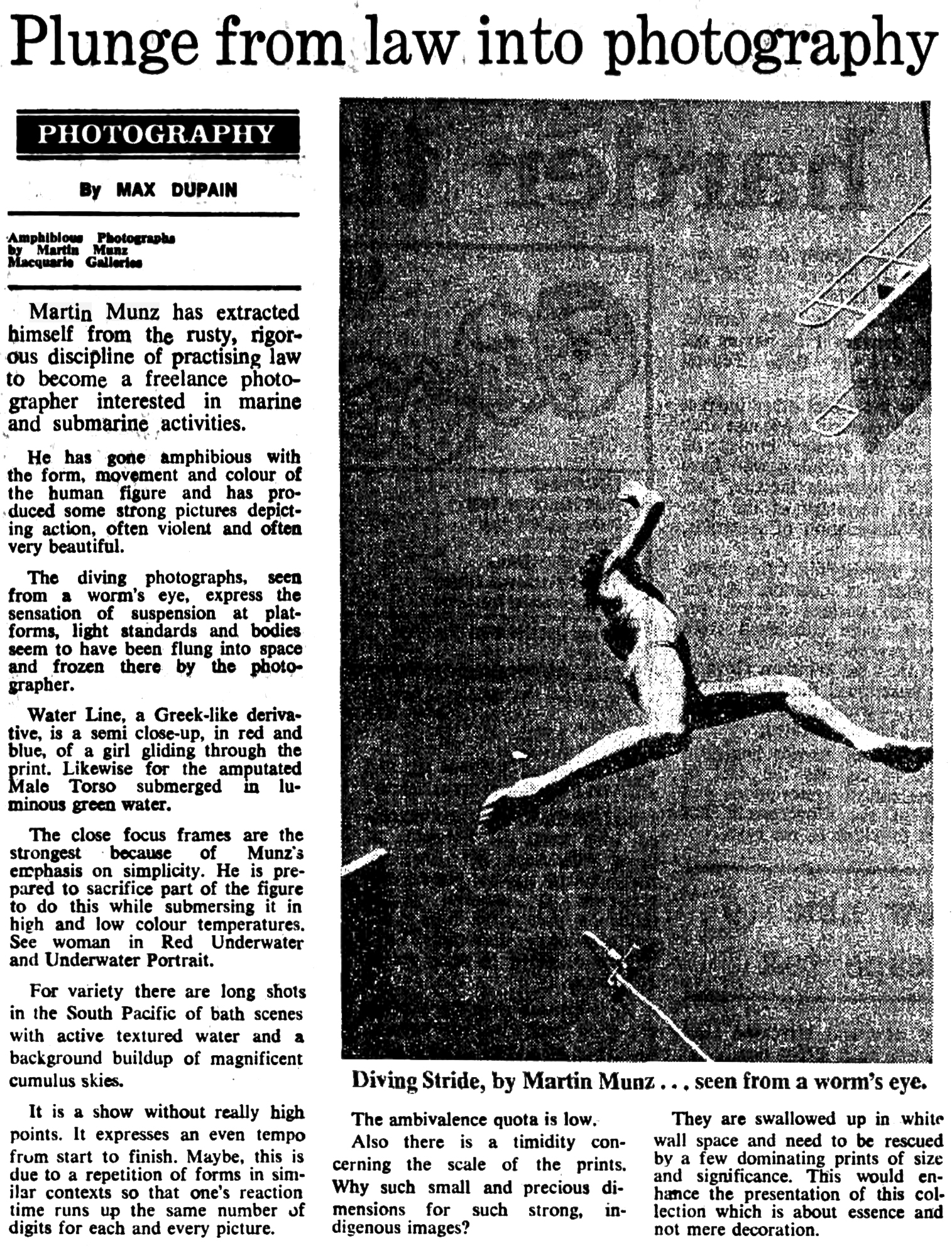 Maurice Hambur, who was a then recent Prahran Photography graduate appointed by John Cato into the Extension Program became Martin’s photography tutor with a view to my getting an entrance folio together:
