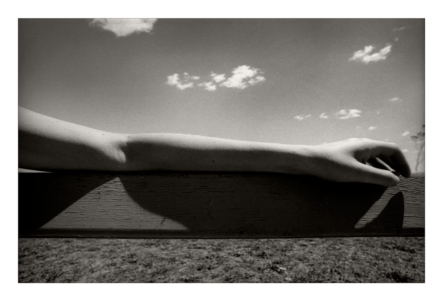Leiss showed Regression 1988 to 1971 at The Photographers Gallery, South Yarra in December 1988. In an interview with Kathleen Devine of The Melbourne Times, Leiss preempts the question of whether photography is an art form, instead highlighting its unconscious, compulsive nature and its role in verifying and archiving events, as illustrated by a Kafka quote on his exhibition flyer; “One photographs things in order to get them out of one’s mind.” The exhibited photographs were varied, covering architecture, social documentation, and poetic illustrations, often theatrically constructed. Leiss concedes the influence on him of other photographers like Ralph Eugene Meatyard but finds greater inspiration in the literature of Thomas Pynchon, and poets Fernando Pessoa, and Paul Celan. He accounts for his preference for photography over writing is that it explores thought and memory without the burden of intellectualisation. He explains that the show’s title Regression, reflects his surveying 17 years of diversity in his work, with the aim of countering a trend toward slick, neatly packaged art exhibitions. Leiss tells Devine he studied acting in New York for nine years, and that it provides another expressive tool that parallels photography in its process of shedding intellectual constraints to achieve clarity.
