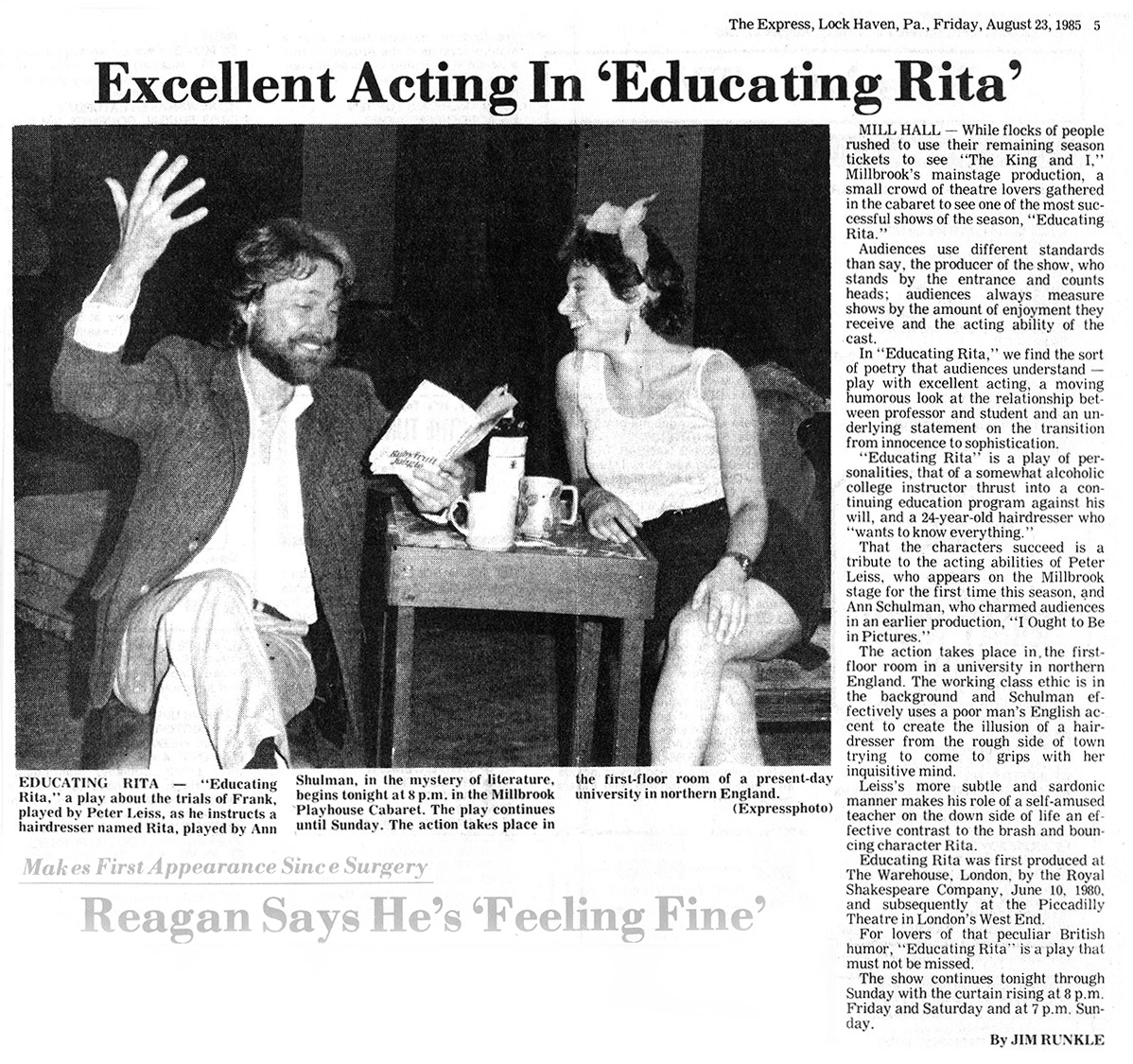 Then followed Kurt Vonnegut’s Fortitude (March 1998); Whatever Happened to Rusty Bolts (April 1999) in which Leiss played Rusty, an embittered former movie star trying to save a young fan from his romantic illusions about Hollywood; and The Fire Raisers, a play by Max Frisch (August 1999).