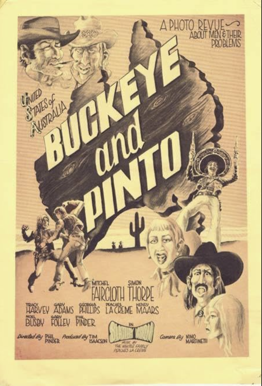 “With Phil Pinder (John’s cousin), David Shepherd, Mitchell Faircloth and Tim Isaacson we became a team with the talented Isacson as producer, and went on to make two no-budget films; Buckeye and Pinto, my first, which parodies traditional westerns with a homosexual subtext; two cowpokes ride the range in the good ole USA (United States of Australia) shooting everything that moves. Starring Mitchell Faircloth, Simon Thorpe, Gary Adams, Gary Foley, Tracy Harvey, Peaches La Creme, Henry Maas and Phil Pinder, it was nominated for AACTA Best Cinematography—my first!