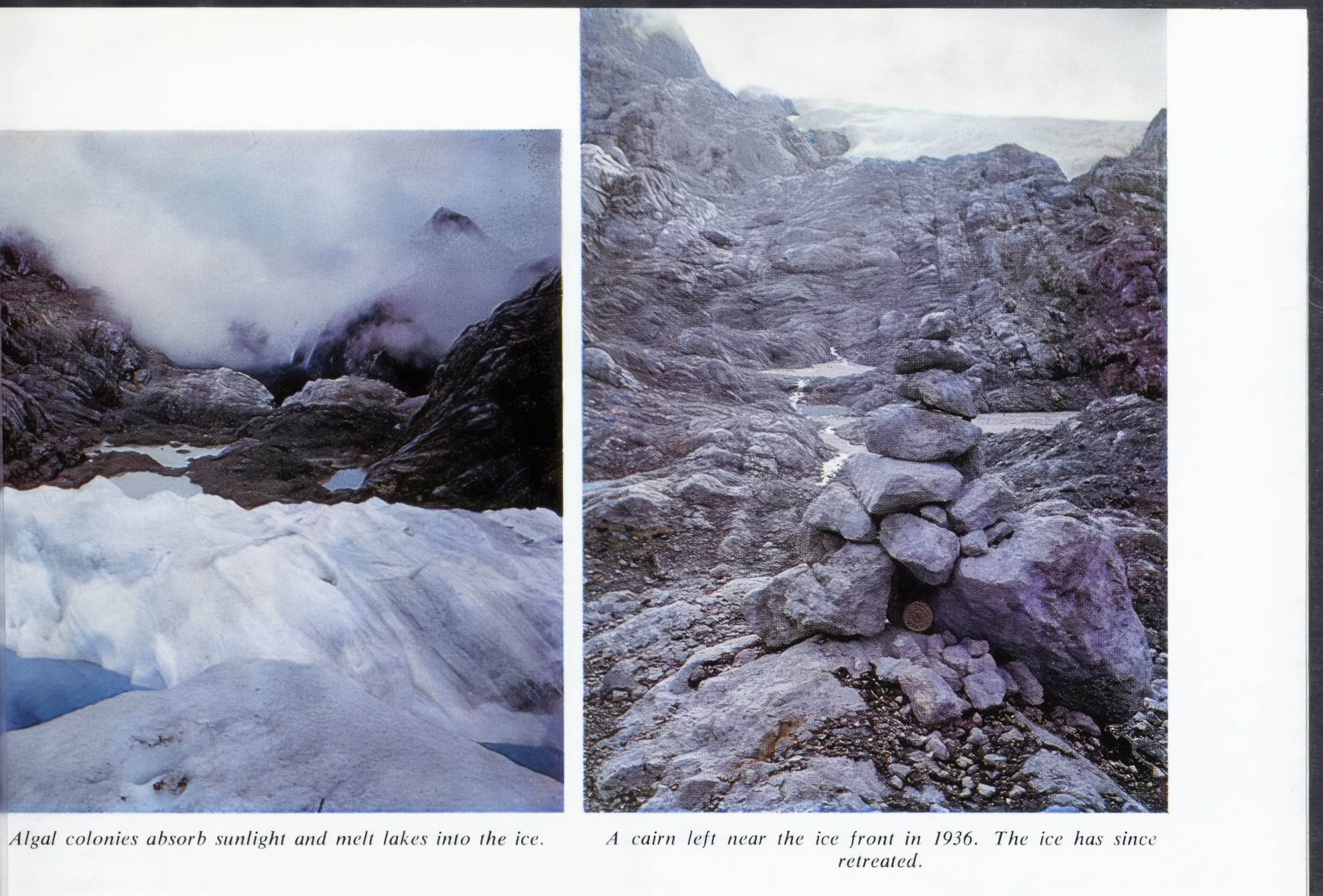As discussed elsewhere photogrammetrists and glaciologists have since the 1800s been using photography, as Muggelton has here, to document the retreat of glaciers in the face of global heating.