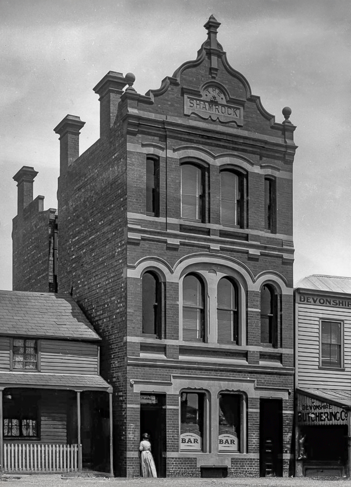 “I was living in a three storey ex hotel building which I rented for $24 per week and sub-let to other students. The rooms in ‘The Shamrock’ had unusual colour schemes, (black, red and gold), and the plumbing and wiring were very basic. The arrival of a taxi load of sailors at 2 am one morning alerted us to the fact that the ‘The Shamrock’ had been operating as a brothel before we moved in. I constructed a very small darkroom in a disused service shaft.