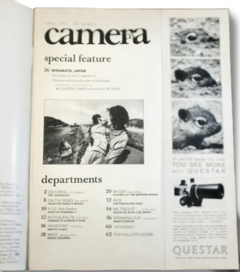 Timothy George notes that an entirely new Japanese edition of Minimata was published in 2021 by Crevis, retaining the Smiths’ original photographs and Nakao Hajime’s translation, but with a greatly expanded postscript that begins with the essay by Ishikawa Takeshi: “Ishkawa is best able to describe Motomura’s suggestion that they come to Japan, their renting a home and setting up a darkroom in Minamata, the making of the famous photograph of “Tomoko in Her Bath,” the beating of Eugene at Chisso’s Goi factory, and the planning and creation of the Life and Camera 35 photo essays and the book.”