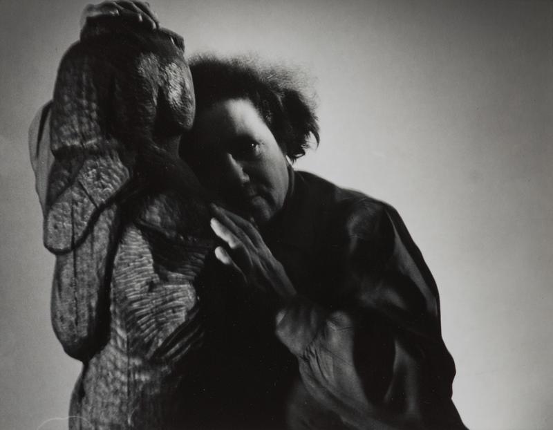 Hubert (Hugh) Samuel Lazarus a.k.a. Hugh Frankland’s portrait of the sculptor Ola Cohn, while suffering camera shake, or because of it, has an expressionist quality; the vibration reinforces the staccato chisel marks in the rough-hewn timber form that Cohn embraces tenderly.
