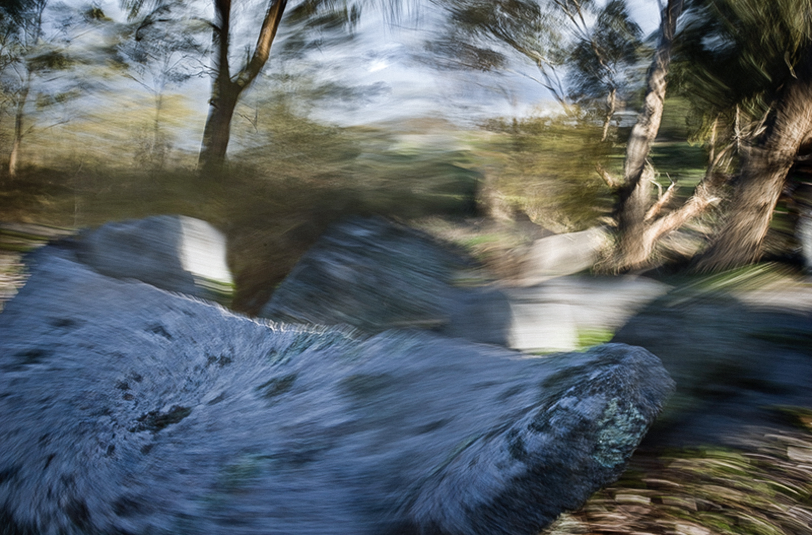 I told him how I had discovered his interest in human perception and illusions. He explained how he had developed his ideas through devising experiments that would test, for example, visual perception against the other senses, in one case placing a swinging garden seat at the centre of a room and surrounded by curtains suspended from a large rig. Swinging or spinning the curtains would induce the sense of movement in subjects; though motionless on the seat, they felt it move in the opposite direction to the trajectory of the curtains. He considered, he said, that a similar effect was occurring in my images.